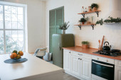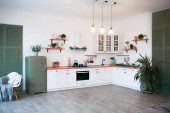 Zdjęcie "Bukiet tulipanów na drewnianym stole. W tle wnętrze białej kuchni w stylu skandynawskim. Koncepcja komfortu w domu" może być wykorzystywane do celów osobistych i komercyjnych zgodnie z warunkami zakupionej licencji Royalty-free. Obraz jest dostępny do pobrania w jakości wysokiej rozdzielczości do 5760x3840.