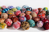 Zdjęcie "Kompozycja Wielkanocna składa się z kolorowych pisanek z białym miejscem do wypełnienia, jak chcesz." może być wykorzystywane do celów osobistych i komercyjnych zgodnie z warunkami zakupionej licencji Royalty-free. Obraz jest dostępny do pobrania w jakości wysokiej rozdzielczości do 5760x3840.