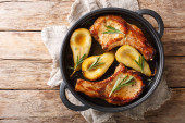 Kotlety wieprzowe gotowane z czosnkiem w żeliwnej patelni