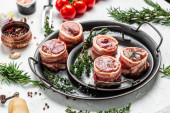 Zdjęcie "Roll of meat with various spices and berry sauce on a dark background. banner, menu, recipe place for text, top view." może być wykorzystywane do celów osobistych i komercyjnych zgodnie z warunkami zakupionej licencji Royalty-free. Obraz jest dostępny do pobrania w jakości wysokiej rozdzielczości do 5760x3840.