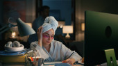 Zdjęcie "Skupiony księgowy esemesuje domowy zoom. Poważna kobieta licząca się z budżetem. Freelance girl przygotowuje cotygodniowy raport wpisując klawiaturę wieczorem zdalnie. Człowiek sylwetka śpiew suszarka" może być wykorzystywane do celów osobistych i komercyjnych zgodnie z warunkami zakupionej licencji Royalty-free. Obraz jest dostępny do pobrania w jakości wysokiej rozdzielczości do 5760x3840.
