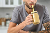 Zdjęcie "Handsome man with delicious smoothie on sofa at home" może być wykorzystywane do celów osobistych i komercyjnych zgodnie z warunkami zakupionej licencji Royalty-free. Obraz jest dostępny do pobrania w jakości wysokiej rozdzielczości do 5760x3840.