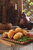 Jalangkote jest South Sulawesi smażone pierogi z kuchni indonezyjskiej, nadziewane ryżu vermicelli, warzywa, ziemniaki i jaja. Pikantny, słodki i kwaśny sos zostanie zanurzony przed jedzeniem.