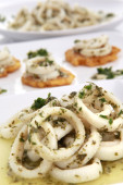 Krążki kalmarów śródziemnomorskiej na chrupiące Rajskie.