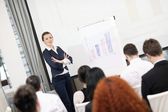 Liderka azjatyckich biznesmenów, pewna siebie, główna prezenterka seminarium. marketing firmy prezentowane wyższe dochody wzrost stopy dochodu.