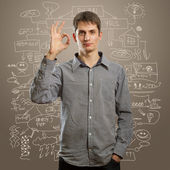 człowiek pokazuje ok