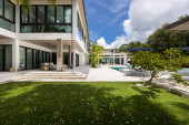 Zdjęcie "Aerial drone shot eleganckiej i nowoczesnej okolicy w Glenvar wysokościach, w Miami-Dade, białe ściany, nowoczesne domy, krótka trawa, baseny, drzewa i palmy" może być wykorzystywane do celów osobistych i komercyjnych zgodnie z warunkami zakupionej licencji Royalty-free. Obraz jest dostępny do pobrania w jakości wysokiej rozdzielczości do 5760x3840.