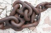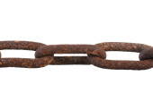 Zbliżenie starego rdzewiejącego łańcucha odizolowanego na białym tle