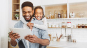 Zdjęcie "szczęśliwy Afrykanin amerykański człowiek trzyma gazetę i patrząc na wesołą córkę ze szklanką soku pomarańczowego " może być wykorzystywane do celów osobistych i komercyjnych zgodnie z warunkami zakupionej licencji Royalty-free. Obraz jest dostępny do pobrania w jakości wysokiej rozdzielczości do 5760x3840.