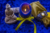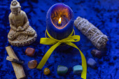 Świece oparzenia na ołtarzu, ilustracja ezoteryczna, czysta negatywna energia, scena astrologiczna