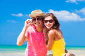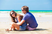 portret szczęśliwy młoda para w okulary zabawy na tropikalnej plaży