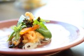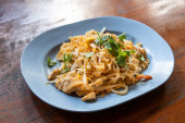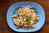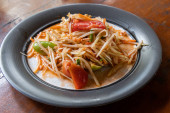 Nad głową viwe na serwowanie autentycznego Som Tam, lub tajskiej sałatki składającej się z wielu owoców i warzyw, takich jak papaja, pomidor, itp., ze słodko-kwaśnym sosem