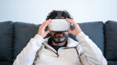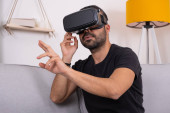 Zdjęcie "Młody człowiek w okularach VR wskazujących na coś" może być wykorzystywane do celów osobistych i komercyjnych zgodnie z warunkami zakupionej licencji Royalty-free. Obraz jest dostępny do pobrania w jakości wysokiej rozdzielczości do 5760x3840.