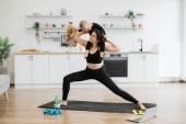 Zdjęcie "Wieloetniczna urocza kobieta ubrana w sportowe ubrania leżąca na macie do jogi w salonie i podnosząca nogi. Pojęcie pielęgnacji ciała, zdrowego trybu życia i regularnego treningu." może być wykorzystywane do celów osobistych i komercyjnych zgodnie z warunkami zakupionej licencji Royalty-free. Obraz jest dostępny do pobrania w jakości wysokiej rozdzielczości do 5760x3840.