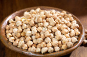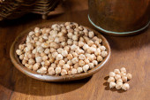 Porcja suszonego niegotowanego grochu z bliska, wegańskie jedzenie