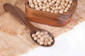 Porcja suszonego niegotowanego grochu z bliska, wegańskie jedzenie