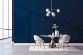 Zdjęcie "Niebieskie wnętrze spotkań z sofą i fotelami ze stołem, dywan na ciemnej betonowej podłodze. Panoramiczne okno na widok na miasto Singapur. Renderowanie 3D" może być wykorzystywane do celów osobistych i komercyjnych zgodnie z warunkami zakupionej licencji Royalty-free. Obraz jest dostępny do pobrania w jakości wysokiej rozdzielczości do 5760x3840.
