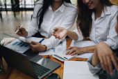 Zdjęcie "Wieloetniczni biznesmeni na spotkaniu. Księgowi zajmują się dokumentami, podatkami, wymianą, księgowością i doradztwem finansowym." może być wykorzystywane do celów osobistych i komercyjnych zgodnie z warunkami zakupionej licencji Royalty-free. Obraz jest dostępny do pobrania w jakości wysokiej rozdzielczości do 5760x3840.