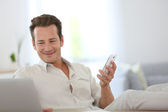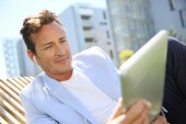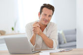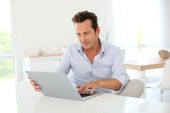 biznesmen pracujący na laptopie