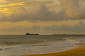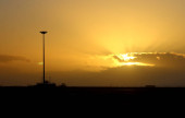 Wschód słońca na pustyni w chłodny zimowy dzień w Al Adaid, Katar