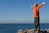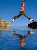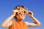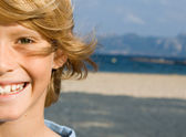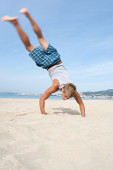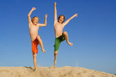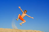 szczęśliwe dziecko skoki na plaży w wakacje lub urlop