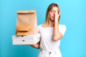 Zdjęcie "Młoda piękna kobieta czuje się szczęśliwa i wskazuje na siebie z podnieceniem. dostarczanie i odbieranie koncepcji żywności" może być wykorzystywane do celów osobistych i komercyjnych zgodnie z warunkami zakupionej licencji Royalty-free. Obraz jest dostępny do pobrania w jakości wysokiej rozdzielczości do 5760x3840.