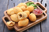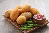 Zdjęcie "Comro to typowy Sundanski placek. Comro jest wykonany z tartej manioku, który jest okrągły lub owalny i wypełniony sosem chili i sosem chili i smażone. " może być wykorzystywane do celów osobistych i komercyjnych zgodnie z warunkami zakupionej licencji Royalty-free. Obraz jest dostępny do pobrania w jakości wysokiej rozdzielczości do 5760x3840.