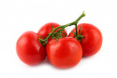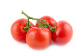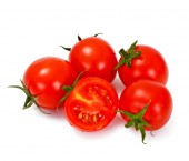 Miska smacznego ketchupu i świeżych pomidorów izolowanych na białym tle
