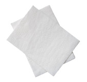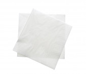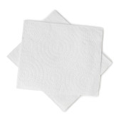 Dwa składane kawałki białego bibuły lub serwetki w stosie przygotowane do użycia w toalecie lub toalecie są izolowane na białym tle ze ścieżką wycinania.