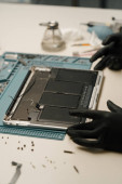 Zdjęcie "Makro shot - telefon naprawiany przez inżyniera" może być wykorzystywane do celów osobistych i komercyjnych zgodnie z warunkami zakupionej licencji Royalty-free. Obraz jest dostępny do pobrania w jakości wysokiej rozdzielczości do 5760x3840.