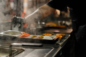 profesjonalna kuchnia w hotelowej restauracji kucharz przygotowuje risotto na obiad