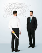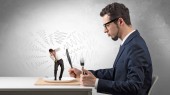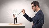 Zły biznesmen z bronią.