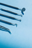 Zdjęcie "Lustro do ust, przyrząd do konserwatorstwa zębów, kuferek i zatyczka na niebieskim tle. Narzędzia medyczne." może być wykorzystywane do celów osobistych i komercyjnych zgodnie z warunkami zakupionej licencji Royalty-free. Obraz jest dostępny do pobrania w jakości wysokiej rozdzielczości do 5760x3840.