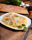 Zdjęcie "Makaron z łososiem i sosem śmietankowym" może być wykorzystywane do celów osobistych i komercyjnych zgodnie z warunkami zakupionej licencji Royalty-free. Obraz jest dostępny do pobrania w jakości wysokiej rozdzielczości do 5760x3840.