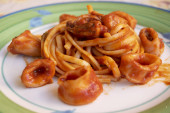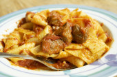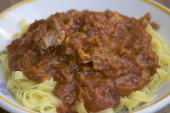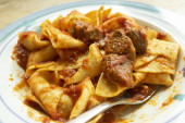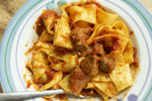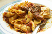 Ręcznie robione pappardelle jaj z czerwonym dzika ragout