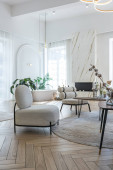 Zdjęcie "stylowe luksusowe wnętrze nowoczesnego studia w zielonych pastelowych kolorach z elementami drewnianymi. drogie meble i dekoracje" może być wykorzystywane do celów osobistych i komercyjnych zgodnie z warunkami zakupionej licencji Royalty-free. Obraz jest dostępny do pobrania w jakości wysokiej rozdzielczości do 5760x3840.
