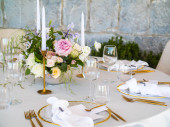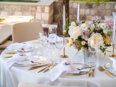 Zdjęcie "Piękna dekoracja ślubna na świeżym powietrzu w mieście. Świece i suszone kwiaty i akcesoria z bukietami i szklankami na stole z lnianym obrusem na nowo ożenionym stole na trawniku" może być wykorzystywane do celów osobistych i komercyjnych zgodnie z warunkami zakupionej licencji Royalty-free. Obraz jest dostępny do pobrania w jakości wysokiej rozdzielczości do 5760x3840.