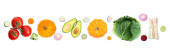 Kolaż z wieloma warzywami i owocami na białym tle, widok z góry