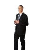 Businessman pointing upwards