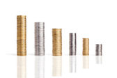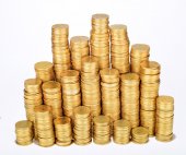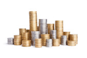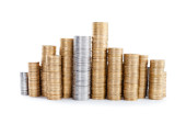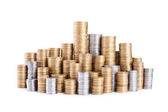 monety na białym tle stosy