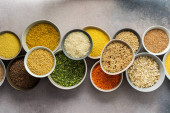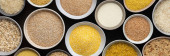 Zdjęcie "Różne zboża w miski baner, widok z góry" może być wykorzystywane do celów osobistych i komercyjnych zgodnie z warunkami zakupionej licencji Royalty-free. Obraz jest dostępny do pobrania w jakości wysokiej rozdzielczości do 5760x3840.