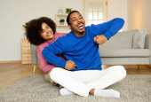 Zdjęcie "Szczęśliwa czarna para jedząca popcorn i oglądająca film w telewizji siedząca na kanapie w domu. Młodzi małżonkowie relaksujący się w salonie w domu, uśmiechnięci do kamery. Koncepcja weekendowego wypoczynku" może być wykorzystywane do celów osobistych i komercyjnych zgodnie z warunkami zakupionej licencji Royalty-free. Obraz jest dostępny do pobrania w jakości wysokiej rozdzielczości do 5760x3840.