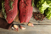 Zdjęcie "Surowy befsztyk z przypraw i zieleni na stole z bliska" może być wykorzystywane do celów osobistych i komercyjnych zgodnie z warunkami zakupionej licencji Royalty-free. Obraz jest dostępny do pobrania w jakości wysokiej rozdzielczości do 5760x3840.