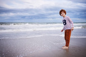ładny chłopak z bambusa włócznia udaje, że jak on jest Aborygenów na bezludnej wyspie