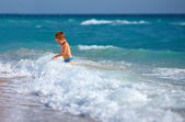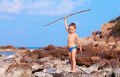 ładny chłopak z bambusa włócznia udaje, że jak on jest Aborygenów na bezludnej wyspie