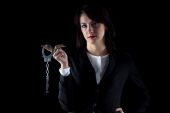 Zdjęcie "Portret poważne kobieta z parą kajdanek" może być wykorzystywane do celów osobistych i komercyjnych zgodnie z warunkami zakupionej licencji Royalty-free. Obraz jest dostępny do pobrania w jakości wysokiej rozdzielczości do 5760x3840.