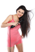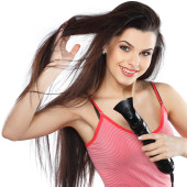 Zdjęcie "Młoda, piękna brunetka z suszarki do włosów" może być wykorzystywane do celów osobistych i komercyjnych zgodnie z warunkami zakupionej licencji Royalty-free. Obraz jest dostępny do pobrania w jakości wysokiej rozdzielczości do 5760x3840.