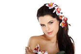 piękna, młoda dziewczyna z różowe kwiaty