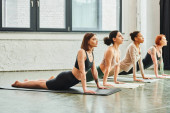 Zdjęcie "Wieloetniczni ludzie ćwiczący Crescent Lunge asana na matach na zajęciach jogi " może być wykorzystywane do celów osobistych i komercyjnych zgodnie z warunkami zakupionej licencji Royalty-free. Obraz jest dostępny do pobrania w jakości wysokiej rozdzielczości do 5760x3840.