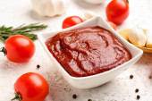 Zdjęcie "Miska ze smaczną pastą pomidorową na stole, zbliżenie" może być wykorzystywane do celów osobistych i komercyjnych zgodnie z warunkami zakupionej licencji Royalty-free. Obraz jest dostępny do pobrania w jakości wysokiej rozdzielczości do 5760x3840.